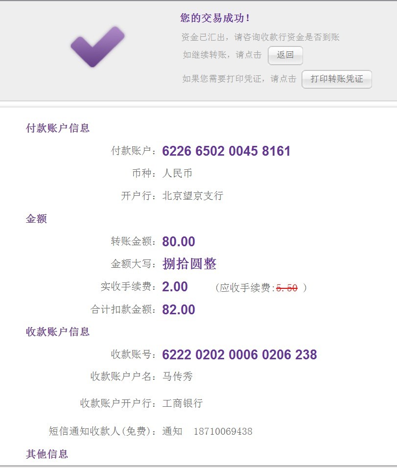 金 額 80.02元 手續(xù)費 0.15元