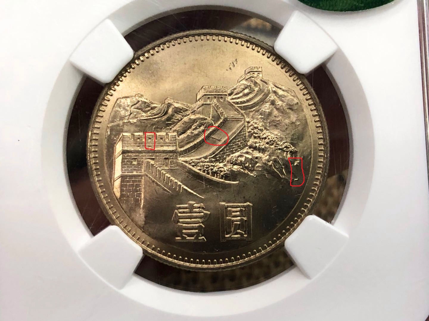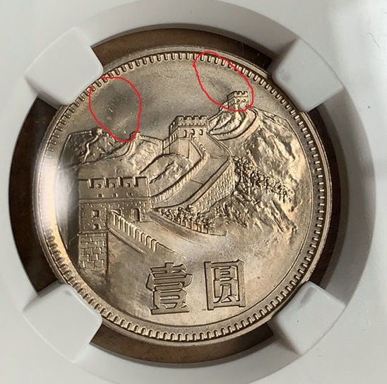 2、假彩比較死板,都是有規(guī)律的。一般就是全幣上彩,左右對稱或者上下一半,或者畫個圈(死板,過渡不自然,可以看到人為的筆束)。后面三種情況的需要特別小心,因為針對第一種情況,假彩完全無光,但后兩種部分留下了部分眩光來迷惑收藏者。(真彩會比較自然,顏色變化完全跟隨幣油的深淺而變化,也會出現(xiàn)局部的色塊。局部色塊的自然過渡,是分辨真假彩的最好方法,這個造假者是做不出來的。80本彩的彩比較淺,所以光度更足,而且局部色塊更明顯。)