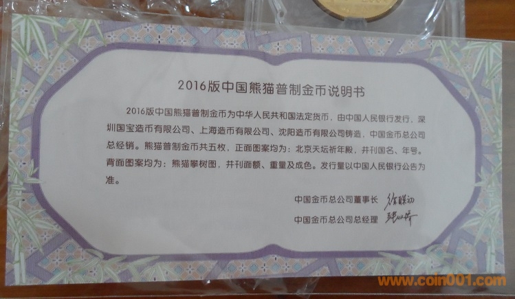金總原裝2016年熊貓15g ..