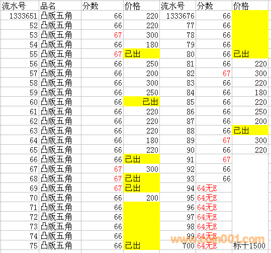 調(diào)價(jià)出三版凸五角802 ..