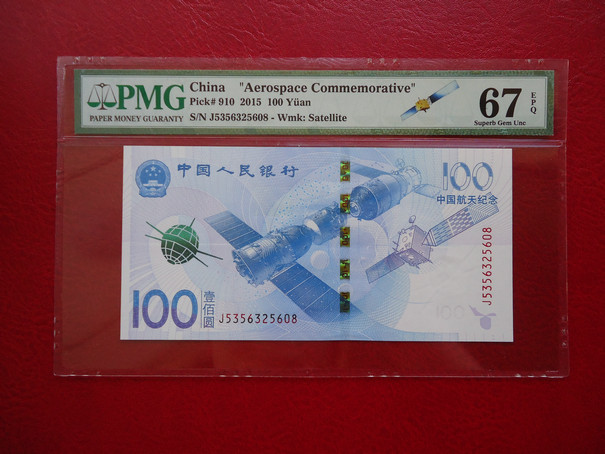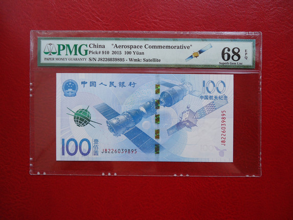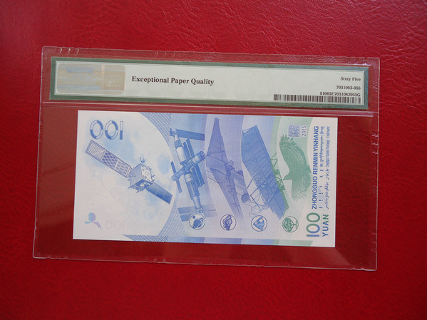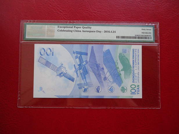 正面看也帶航天衛(wèi)星標(biāo) 背面PMG盒子有注釋 Exceptional Paper Quality, Celebrating China Aerospace Day - 2016.4.24