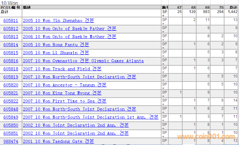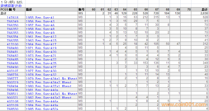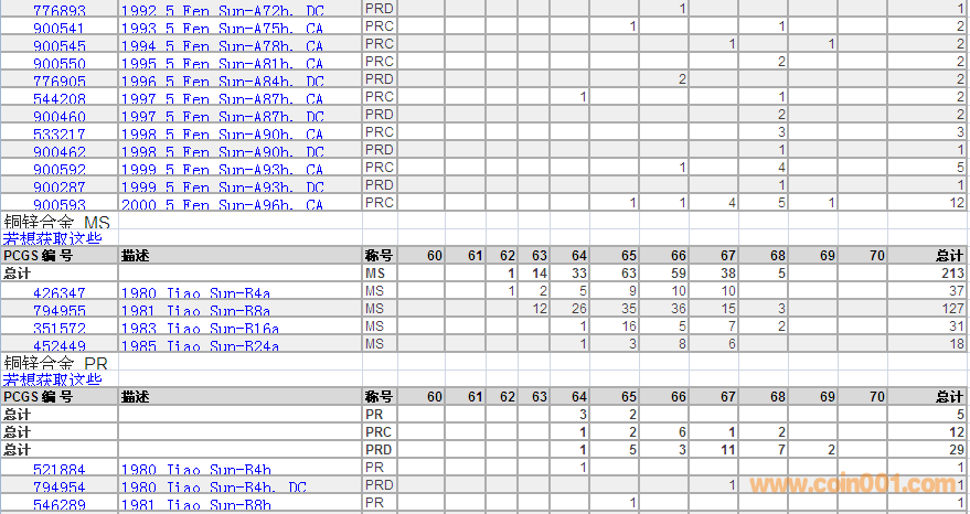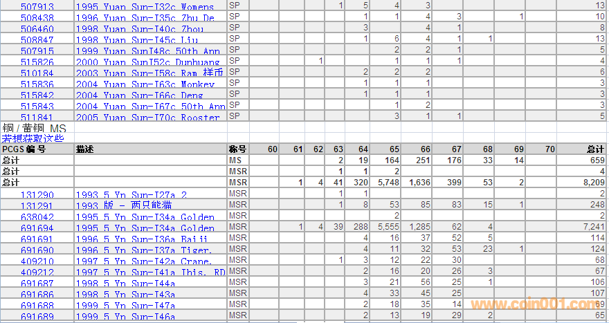 PCGS硬幣評級數(shù)量報告 ..