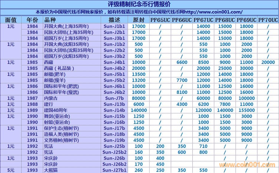 普通(精制)紀(jì)念幣交易