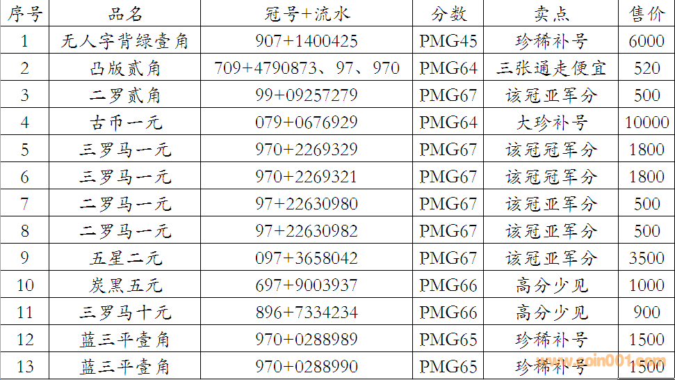 評級普通(精制)紀念幣交易