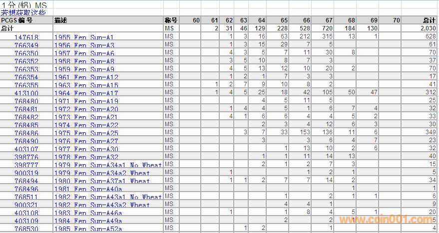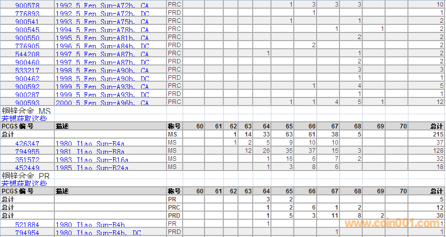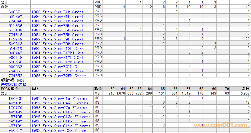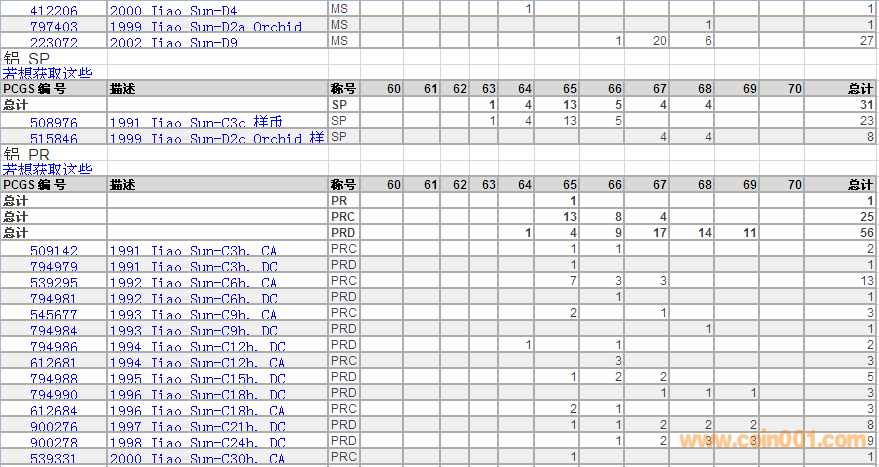 PCGS硬幣評級數(shù)量報(bào)告 ..