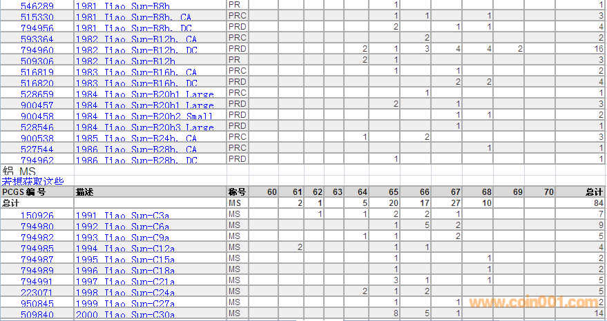 PCGS硬幣評(píng)級(jí)數(shù)量報(bào)告 ..