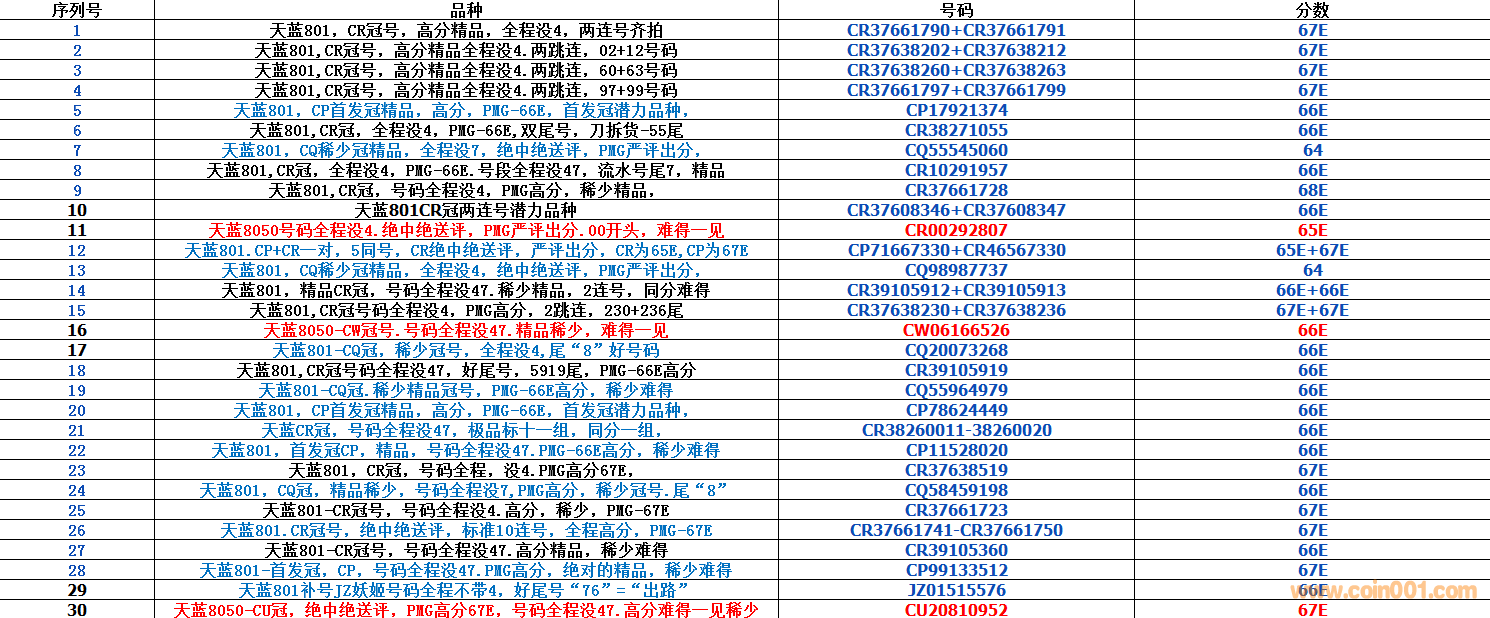 第二期天藍(lán)專(zhuān)場(chǎng)拍賣(mài),8050+801均是天藍(lán)冠號(hào),每周6晚八點(diǎn)拍賣(mài),