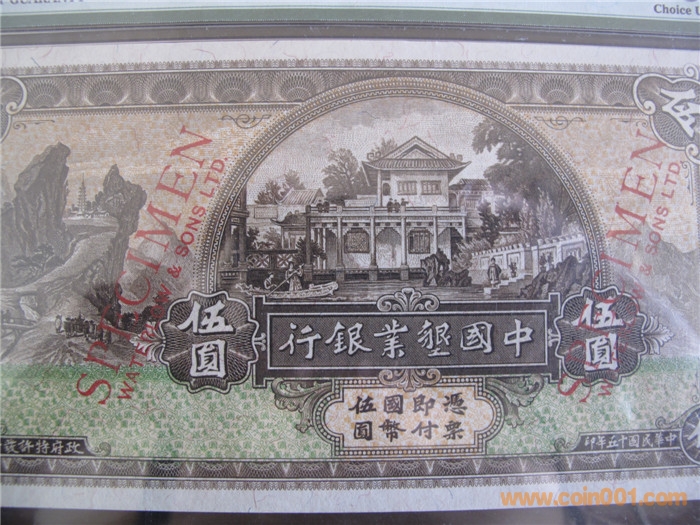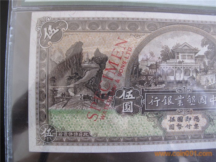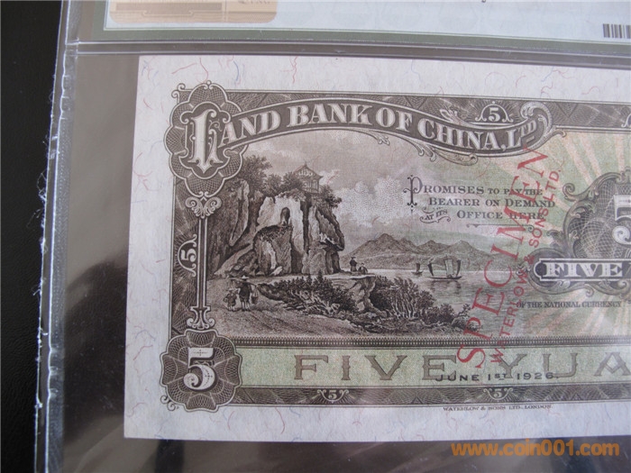 (實際發(fā)行當(dāng)在18年) 1、5、10元地名:上海(黑色加蓋——樣本,單面印刷)。