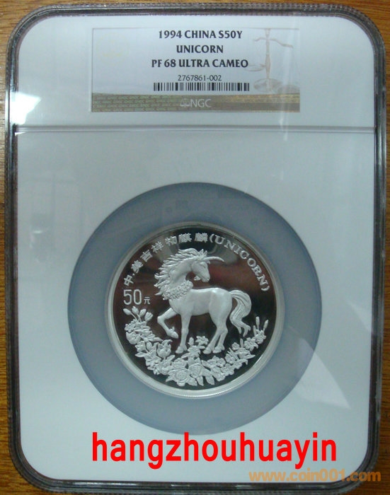 1994年5盎司麒麟精制銀幣NGC68===15000