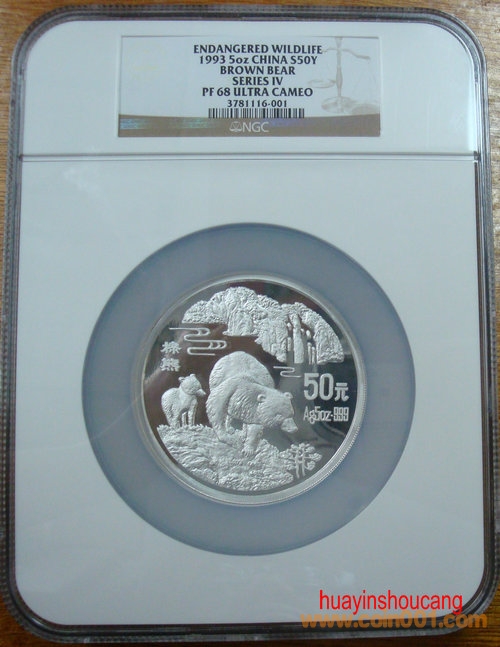 1993年5盎司棕熊銀幣NGC68====32000