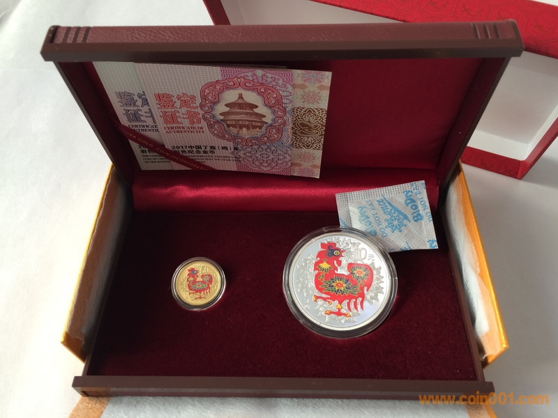 1、2017年生肖雞彩色金銀套幣,包裝證書齊全!