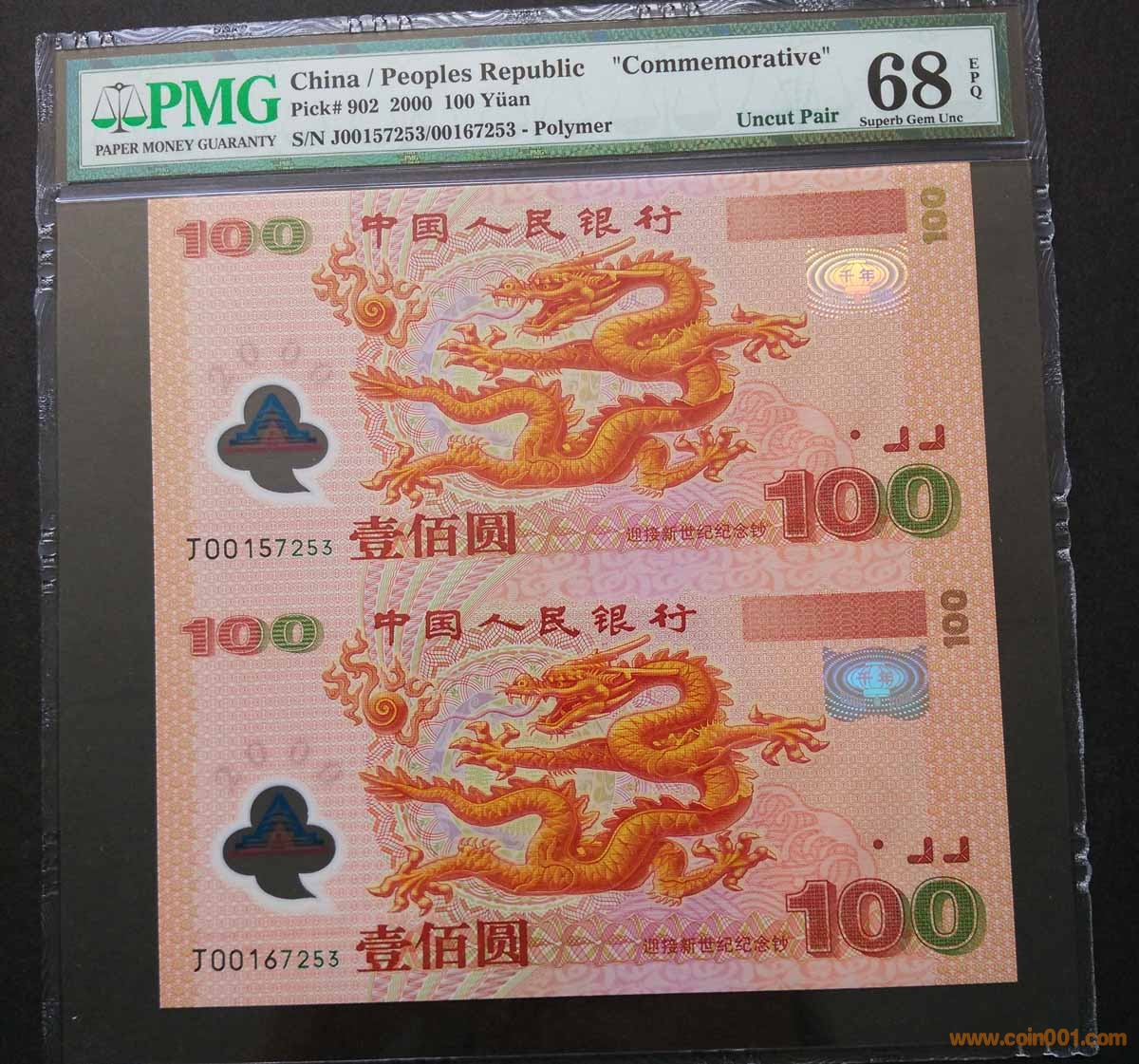 2枚 雙龍鈔 連體紀念 ..