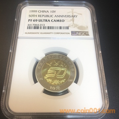 建國(guó)50周年精制流通紀(jì)念幣一枚(帶冊(cè)、帶證書、NGC P69) 價(jià)錢1450