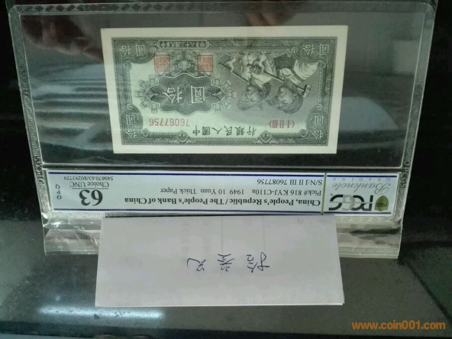 第一版人民幣拾元小工農(nóng),號碼76087756,pcgs63opq,價格2300。