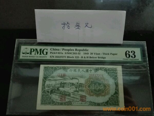 第一版人民幣二十元立交橋,號碼41841728,pmg63,價格2900。