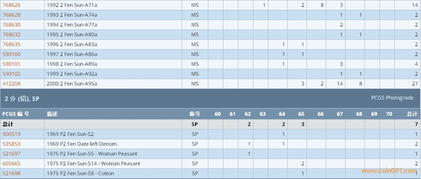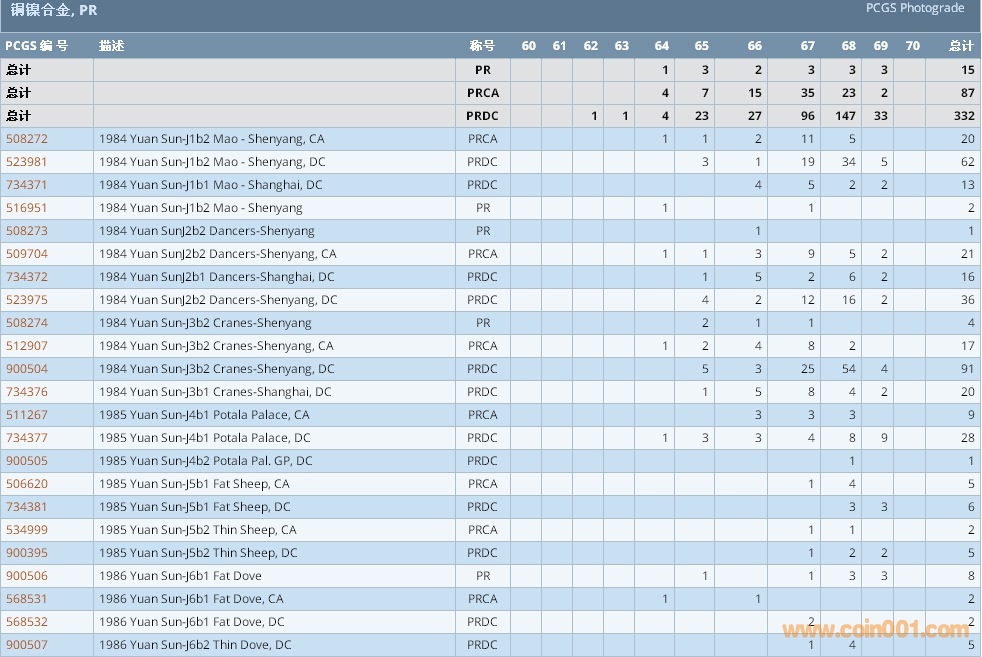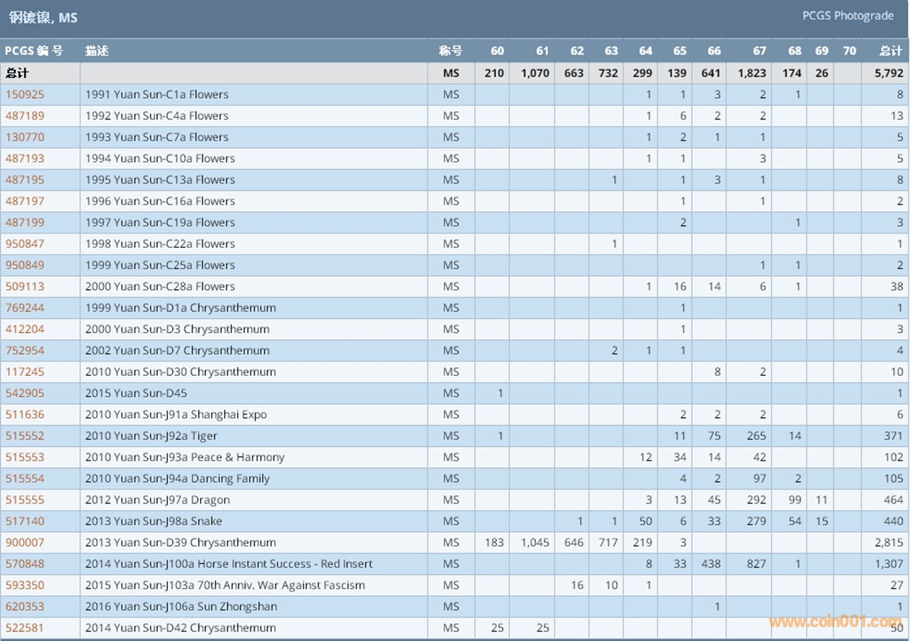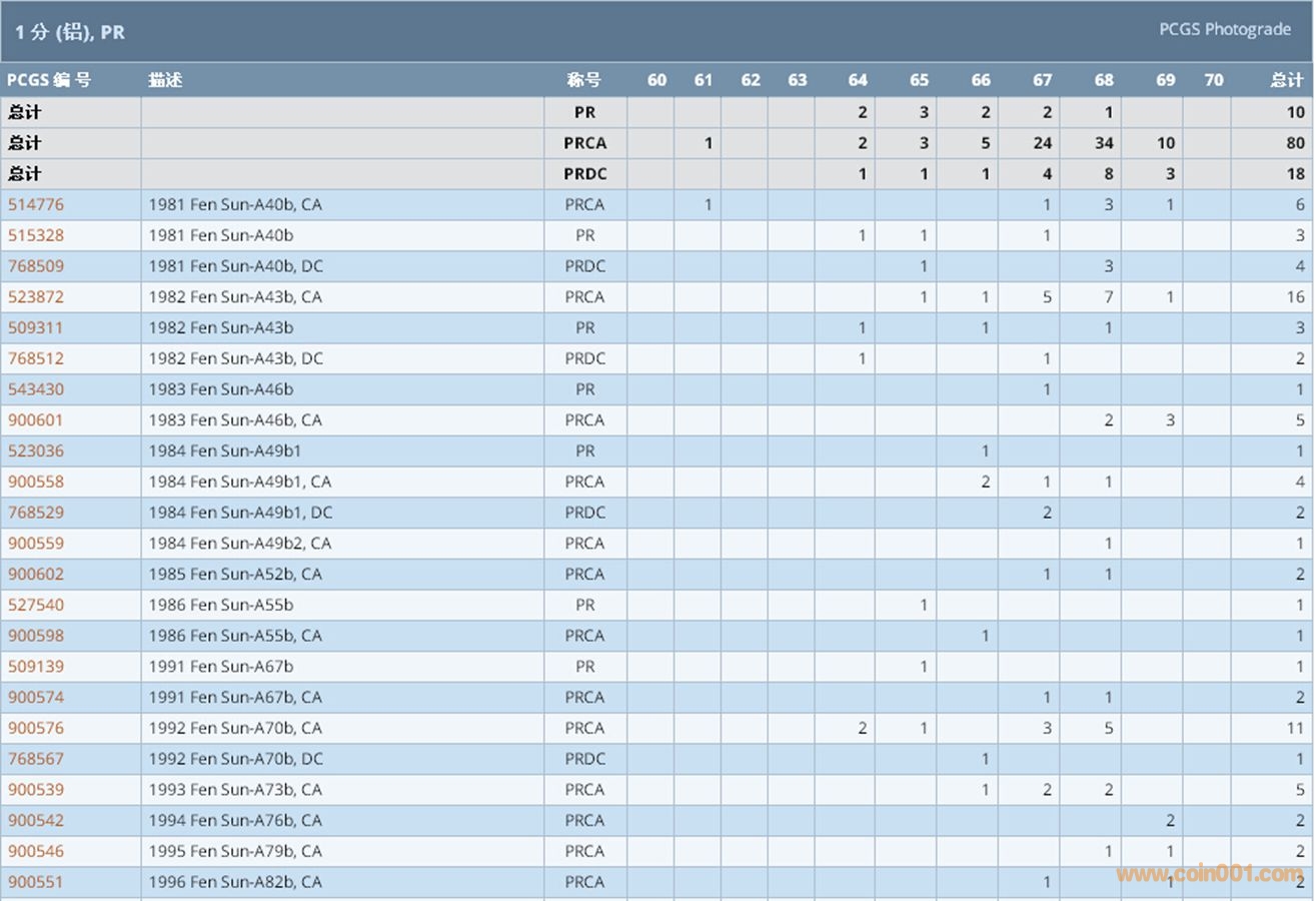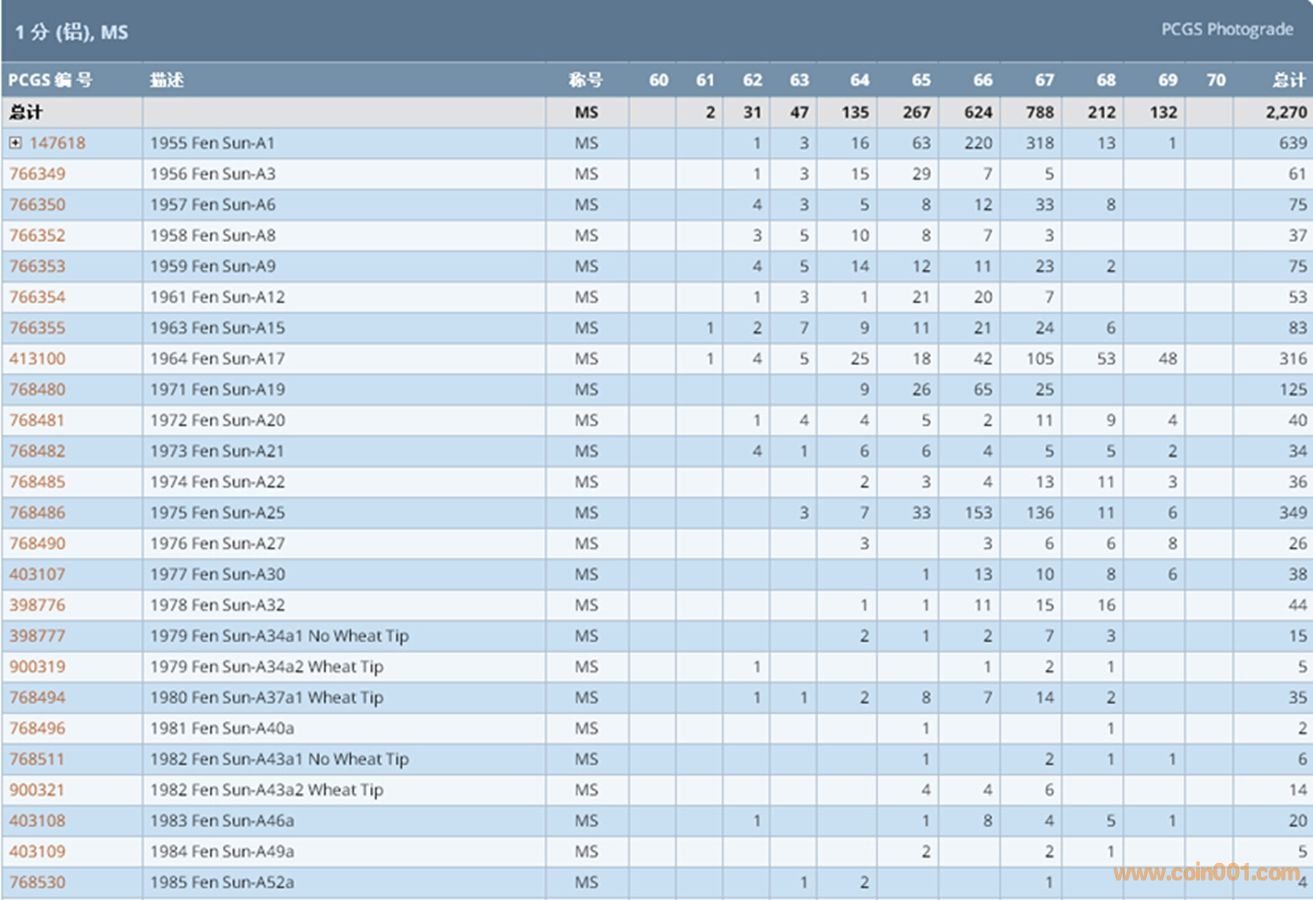 PCGS硬幣評(píng)級(jí)數(shù)量報(bào)告 ..
