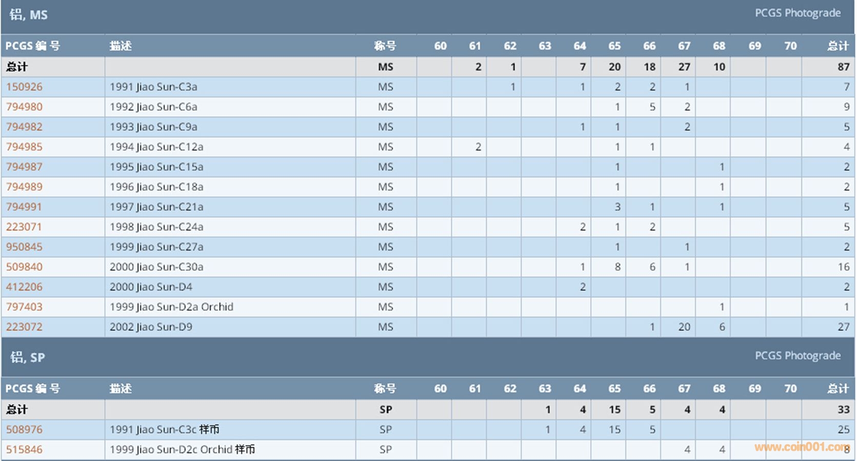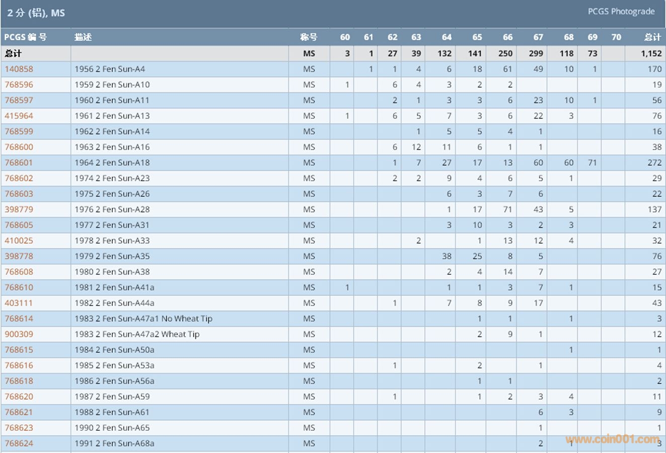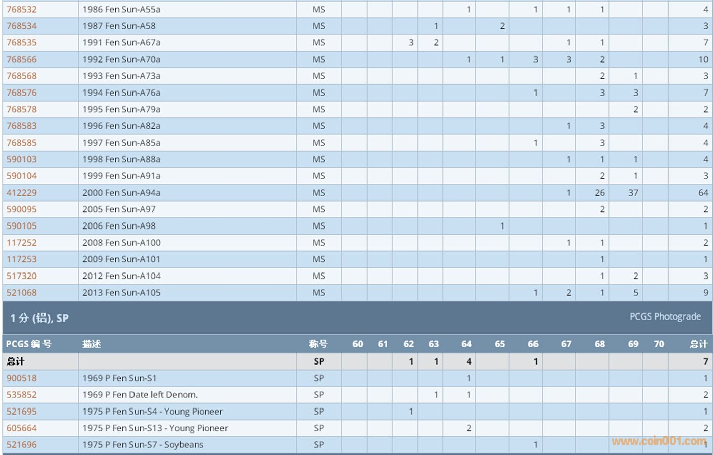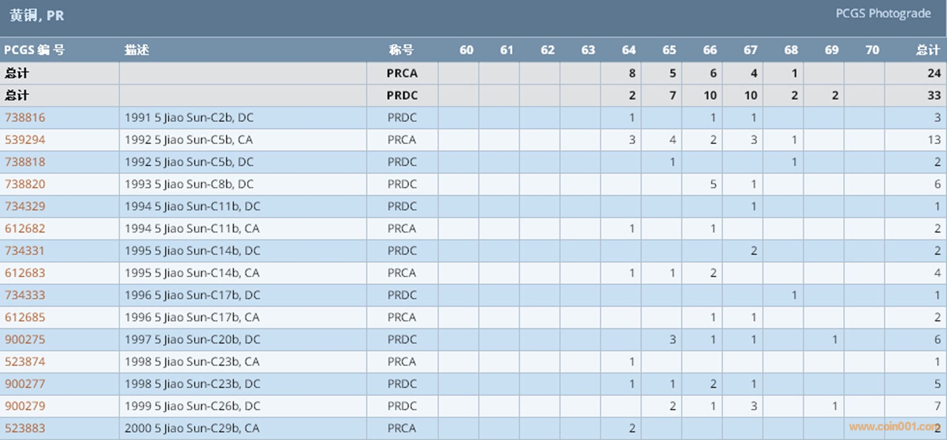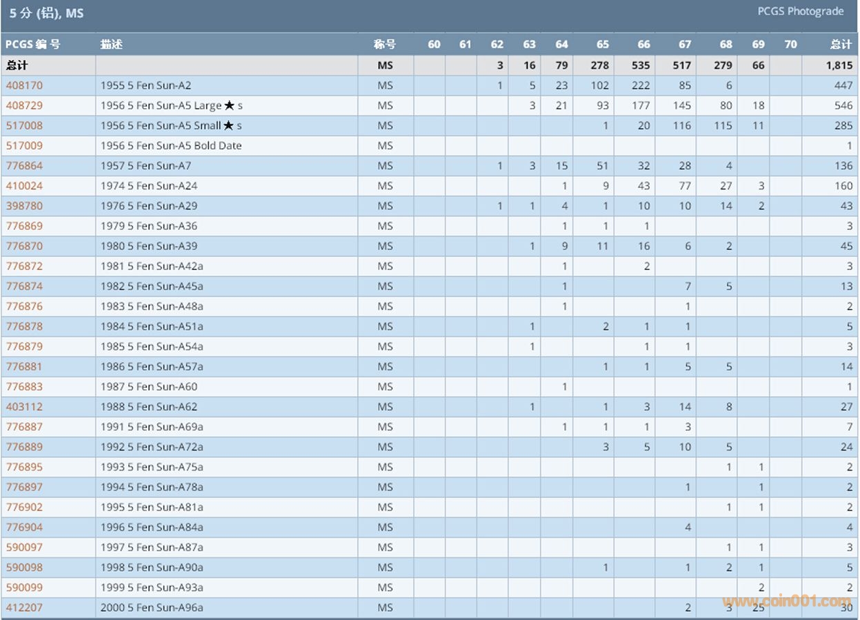 PCGS硬幣評(píng)級(jí)數(shù)量報(bào)告 ..