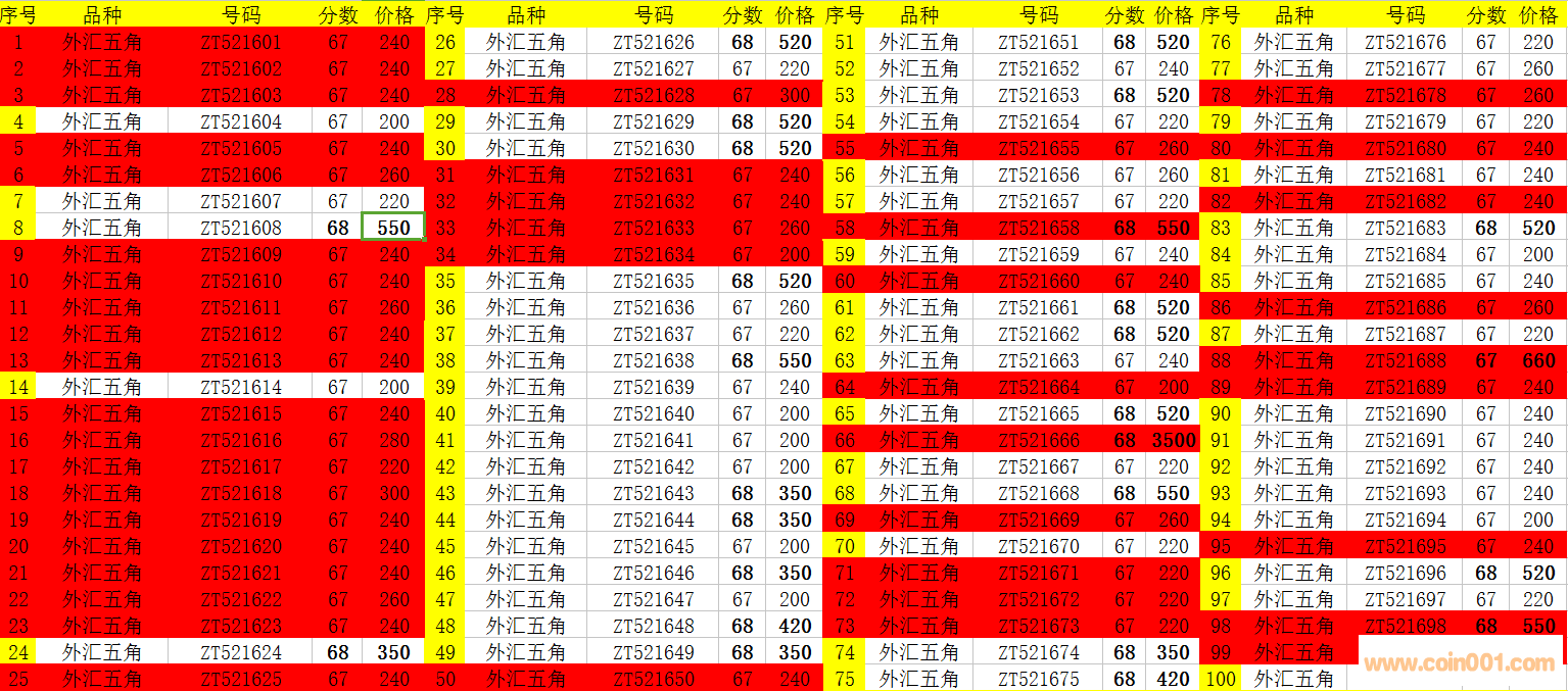 電聯(lián)確認(rèn)外匯五角PMG ZT521690  67分一張。
