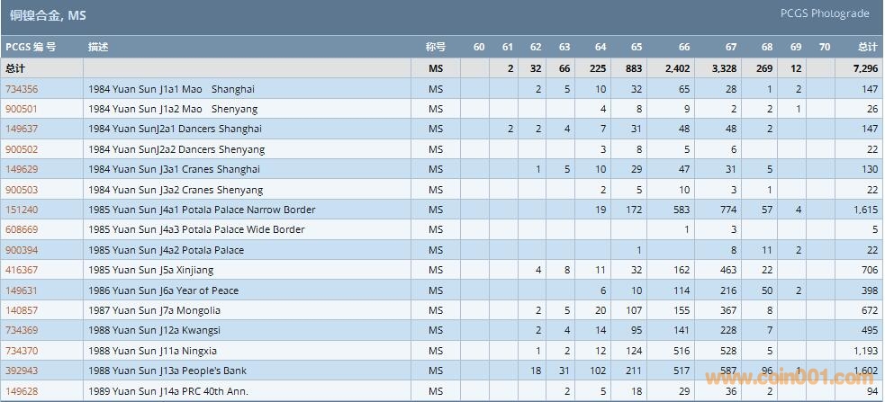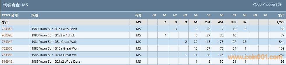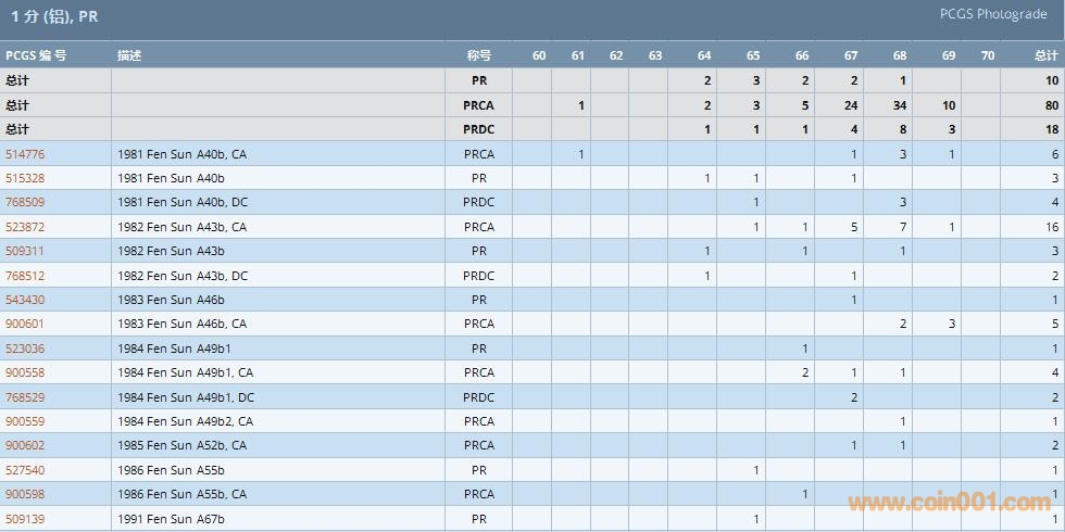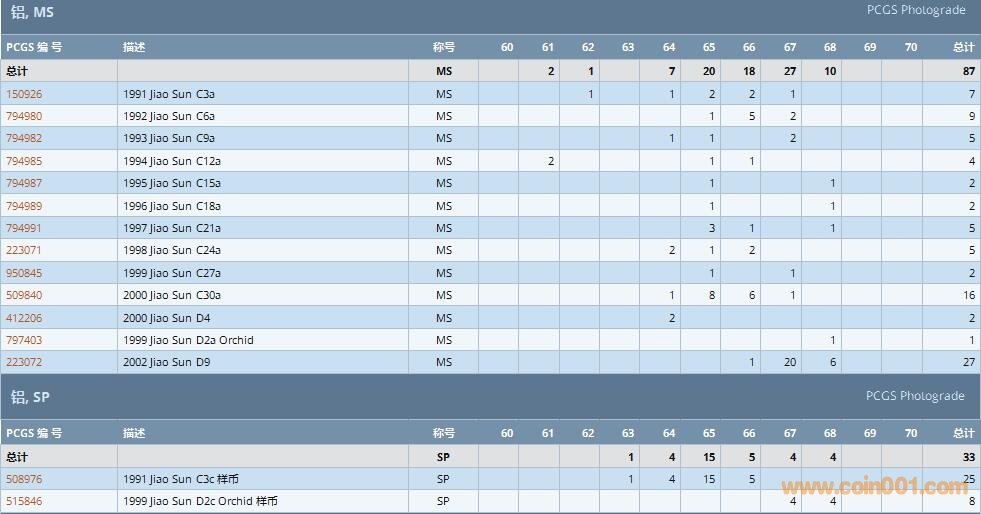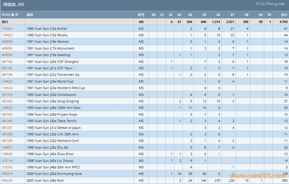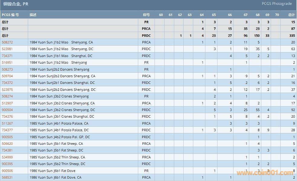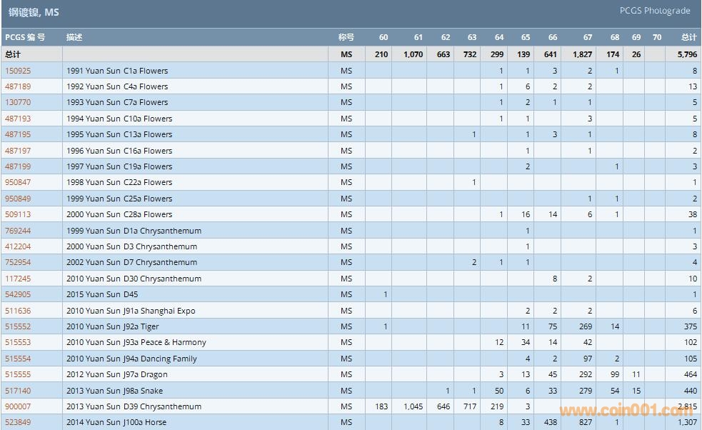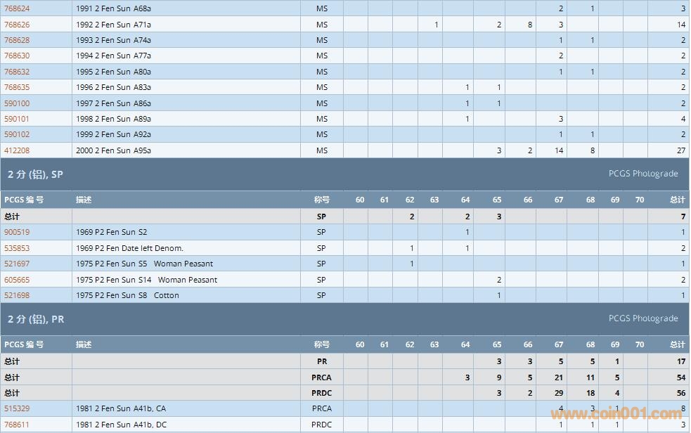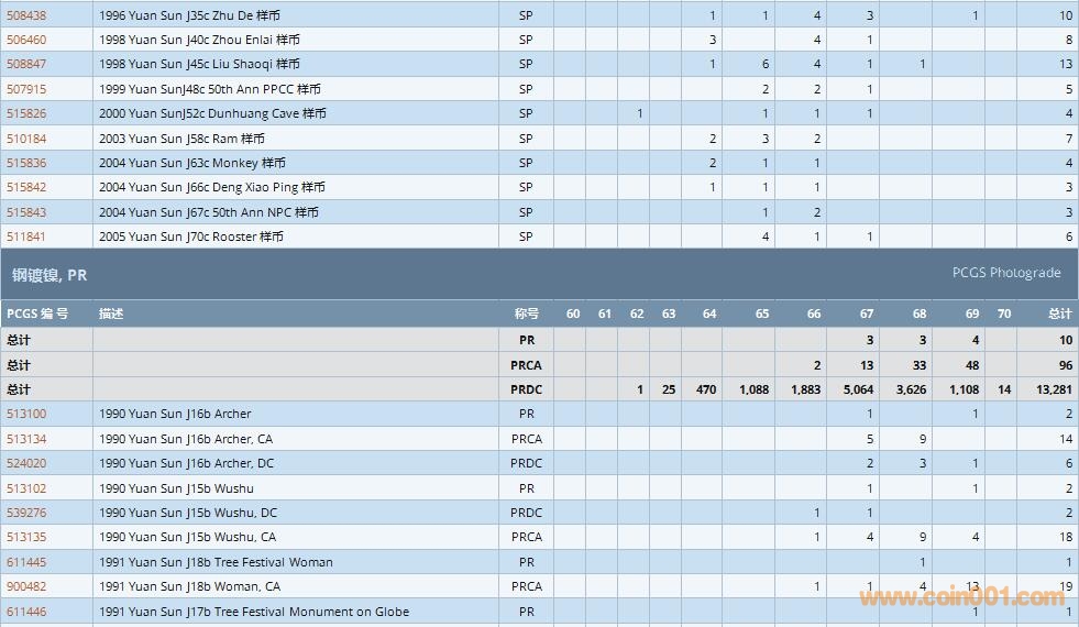 PCGS硬幣評(píng)級(jí)數(shù)量報(bào)告 ..