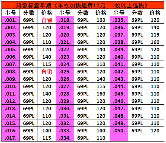 這套雞象標簽是為了配套去年的金猴標而出品由于標簽出的比較晚已接近首期和早期的送評截止日期加之上海廠標要整合送評,所以送評的人比較少。剛一拿到手就在朋友圈銷售過半,喜歡的朋友不要錯過機會。 沈劍輝 微信號 13091872888 (請注明評級幣) 手機號 13091872888 支付寶 13091872888購買一枚快遞費12元,默認天天快遞,2枚包郵。如需順豐陸運請支付18元,順豐空運請支付23元。多網同售,以防售缺。確認后請微信通知我下,謝謝。評級幣以分數為準,包盒子不鼓不裂,確認后我會微信發(fā)圖給您再次查驗。感覺沒問題您再付款,售出后不退