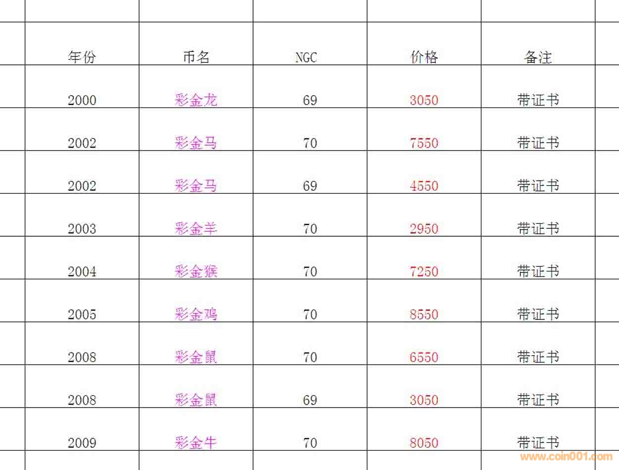 評級普通(精制)紀念幣交易