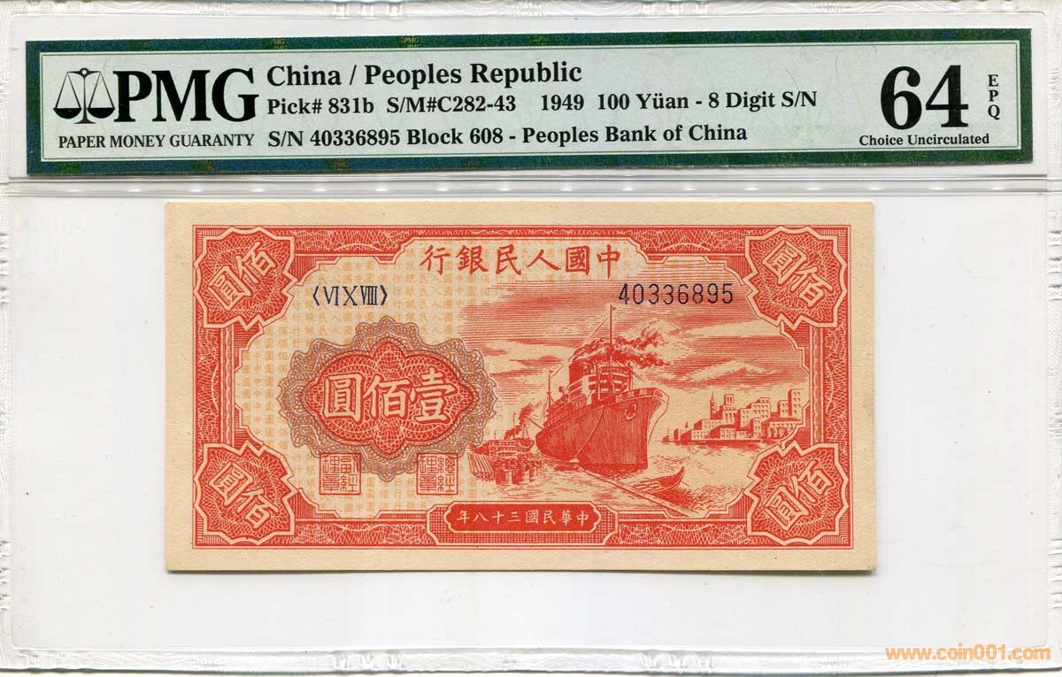 ◆PMG紅輪船100元 一版 ..