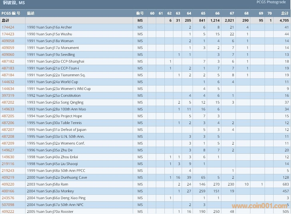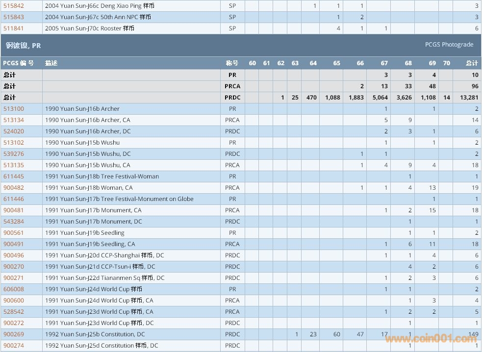 PCGS硬幣評級數(shù)量報告 ..