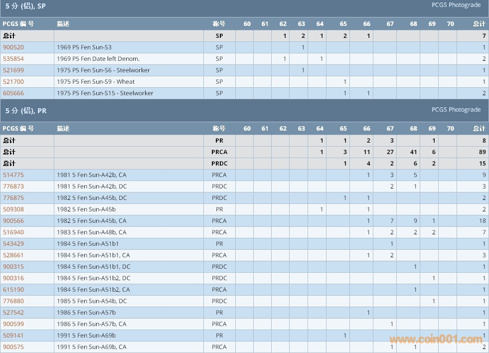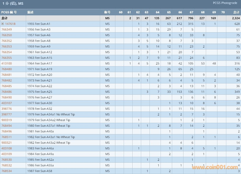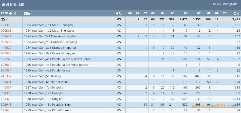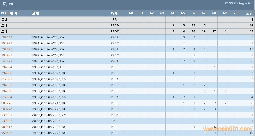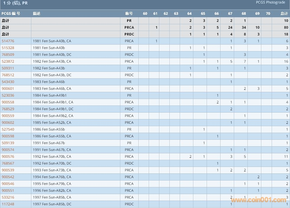 PCGS硬幣評(píng)級(jí)數(shù)量報(bào)告 ..