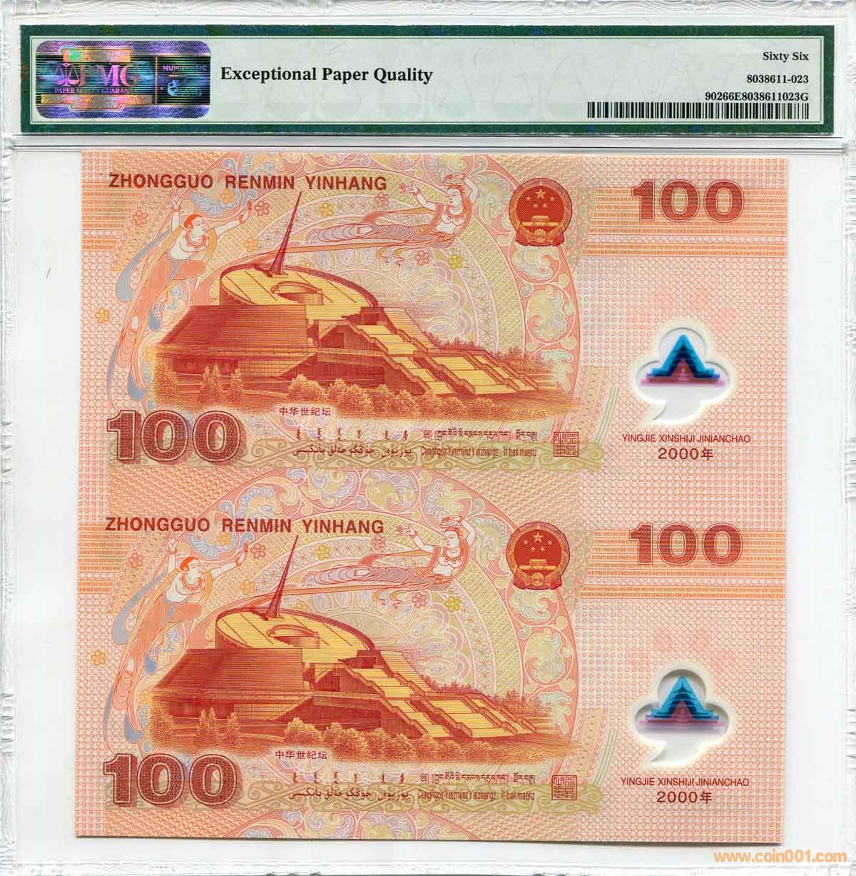 ◆降售 雙龍鈔 PMG66/67E ..