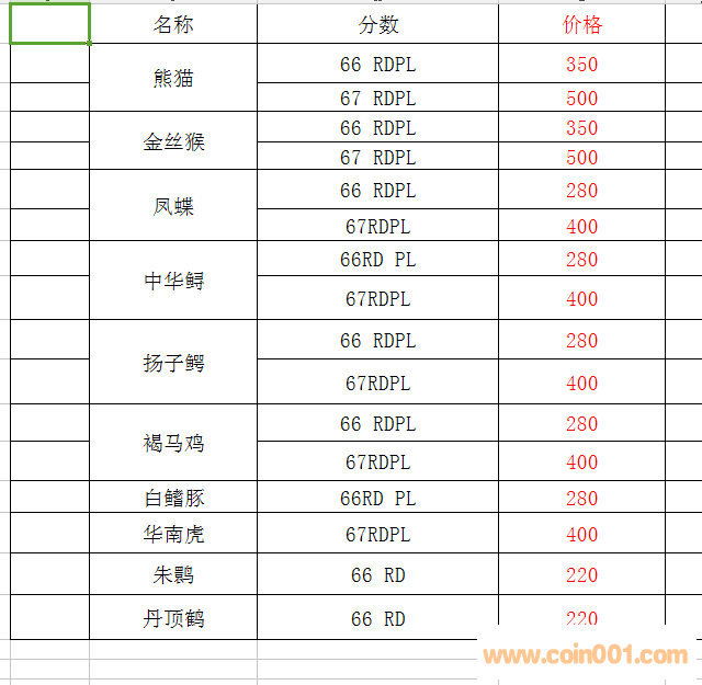 評級普通(精制)紀念幣交易