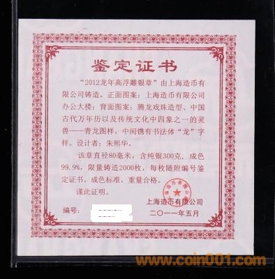 2012年龍年高浮雕300克 ..