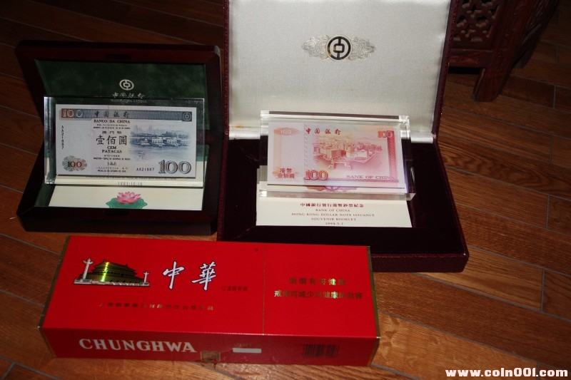 售:94中銀香港首發(fā)鈔\95澳門首發(fā)鈔紙鎮(zhèn)禮品盒一對-4月1日