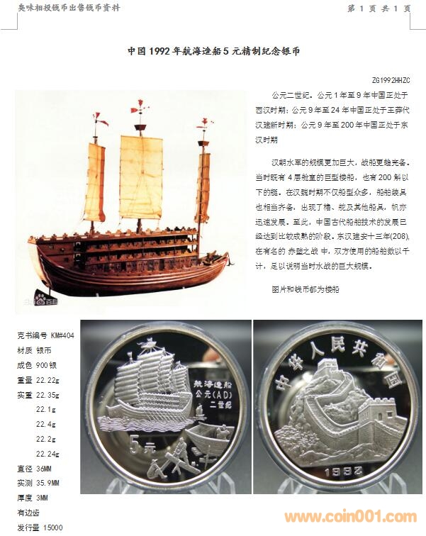 中國(guó)1992年航海造船5元 ..