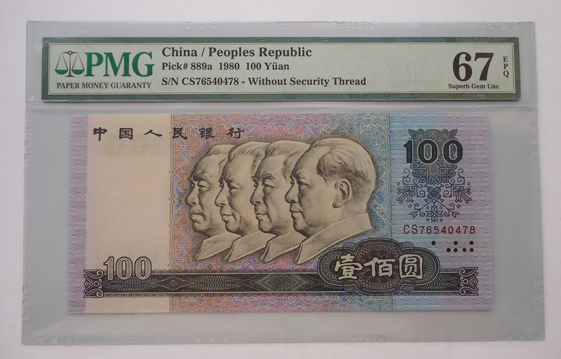 8拍 0元起拍 第四版人*民*幣 PMG 67分 90100 PM稀冠 全程無47尾380+381 二張連號一起拍 剛嚴評回來的第三代PMG高清盒!捆拆絕中絕刀貨送評的!嚴重嚴評低分了!大面值的67分絕對罕見!