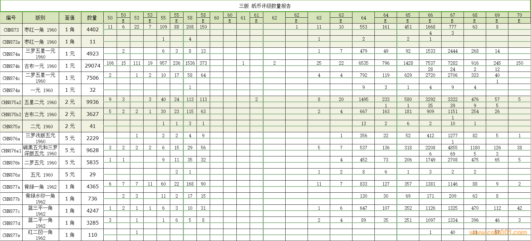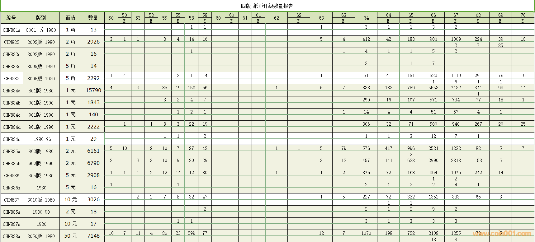 PMG紙幣評級數(shù)量報告 ..