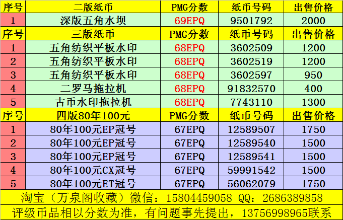 更新出售PMG評級紙幣 ..