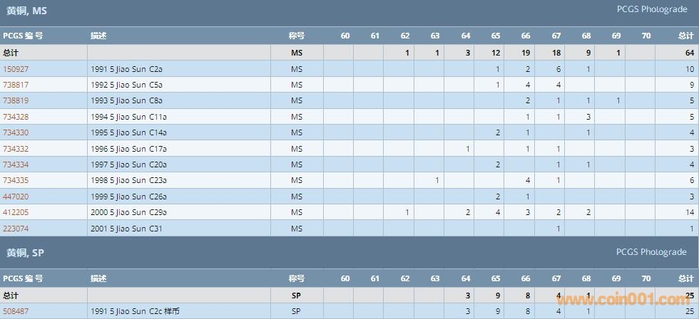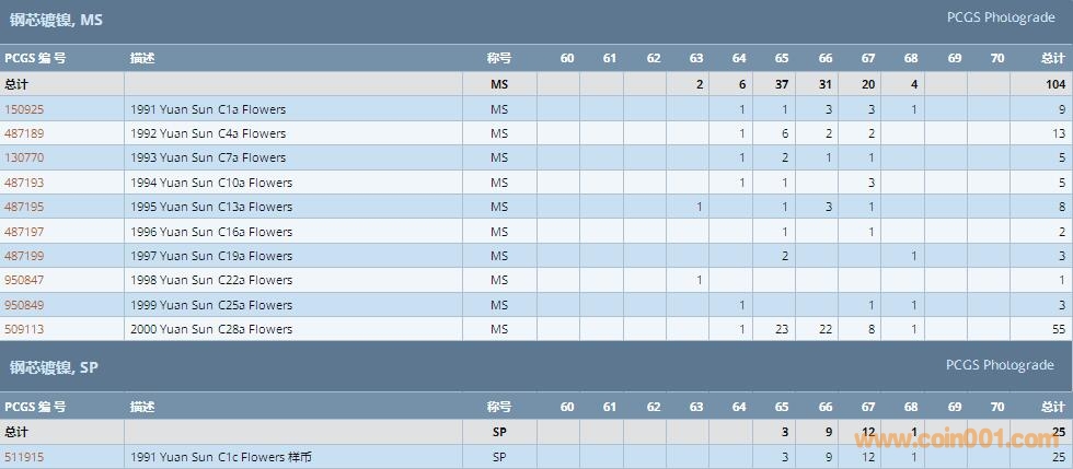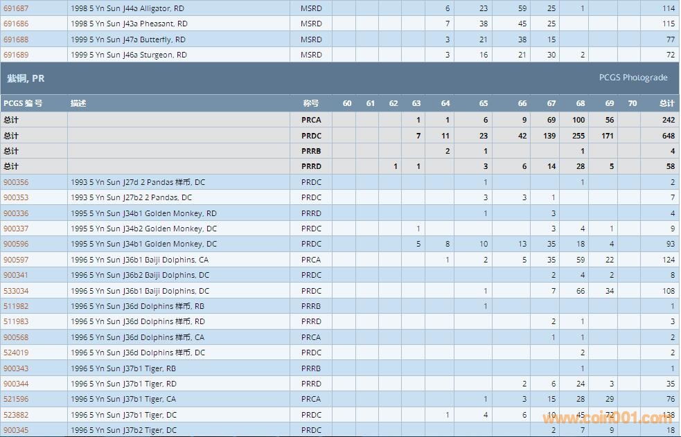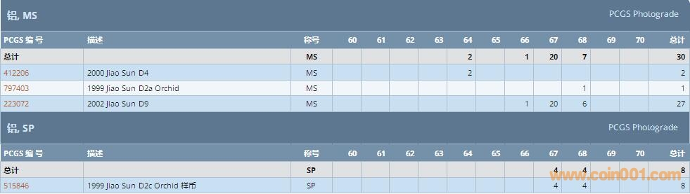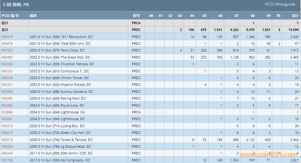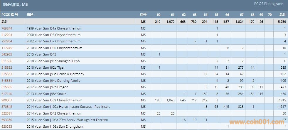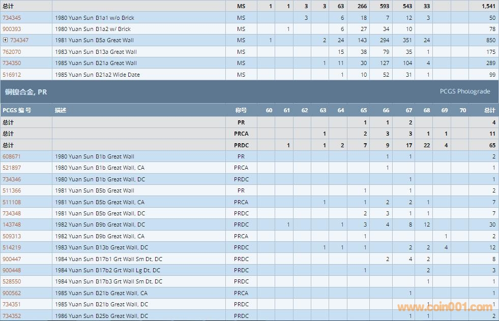 PCGS硬幣評級數(shù)量報告 ..