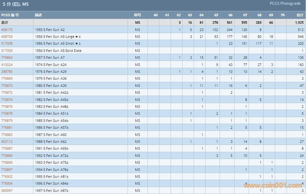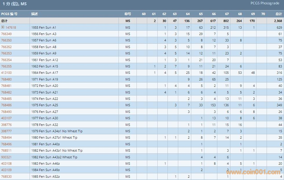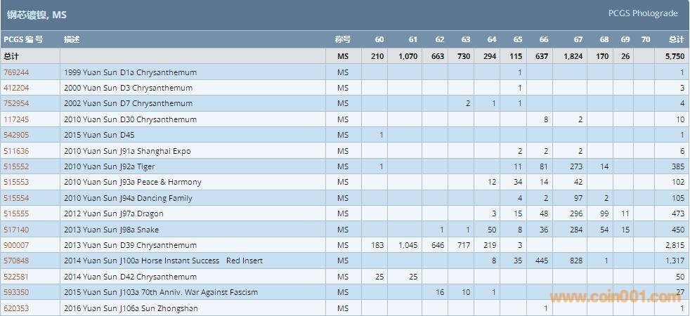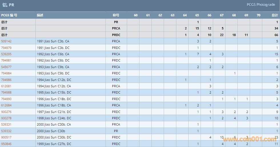 PCGS硬幣評(píng)級(jí)數(shù)量報(bào)告 ..