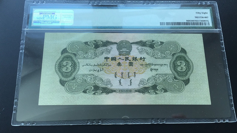 PMG58分二版綠叁元,全 ..