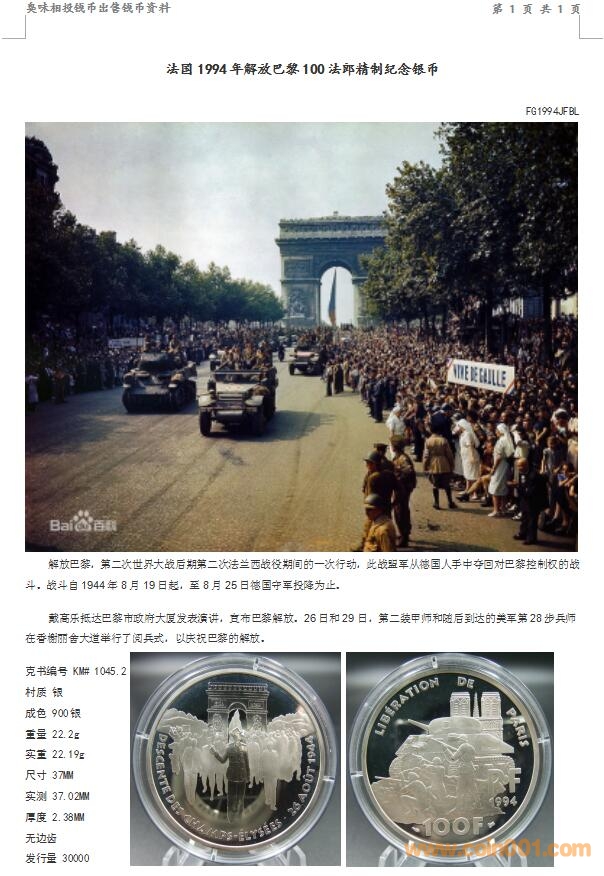 法國1994年解放巴黎100 ..