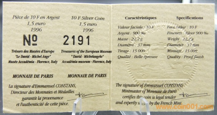 法國(guó)1996年大衛(wèi)1.5歐10 ..