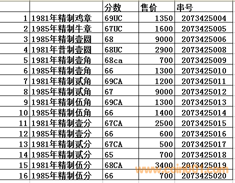 評級普通(精制)紀念幣交易