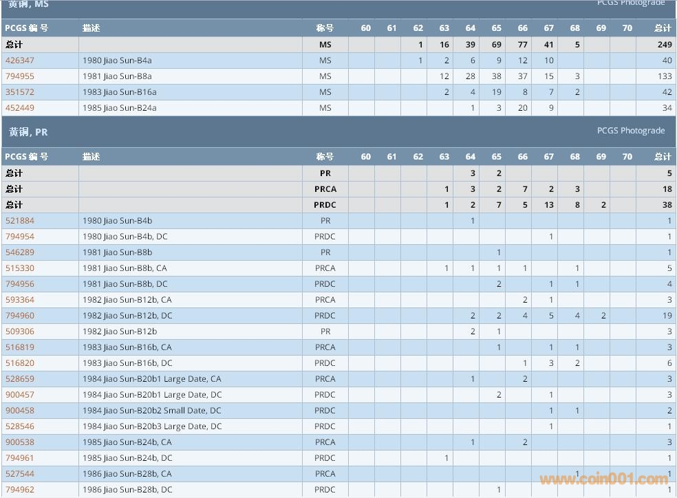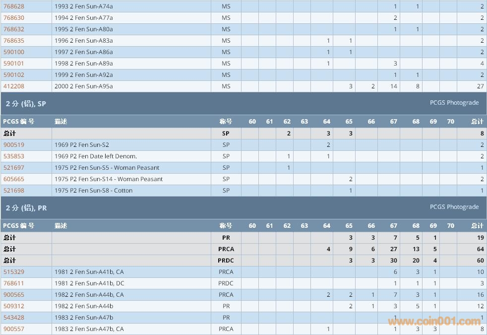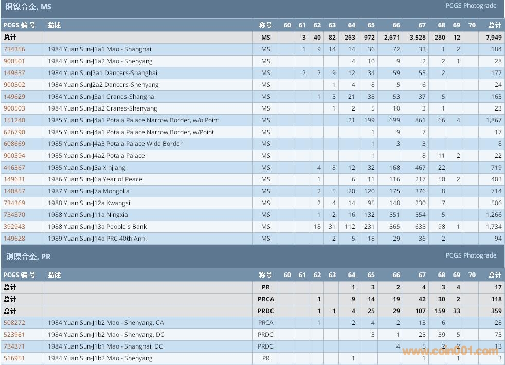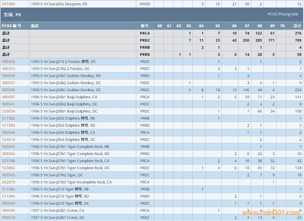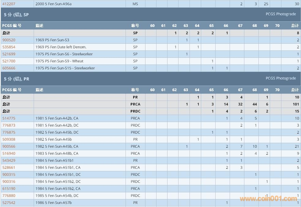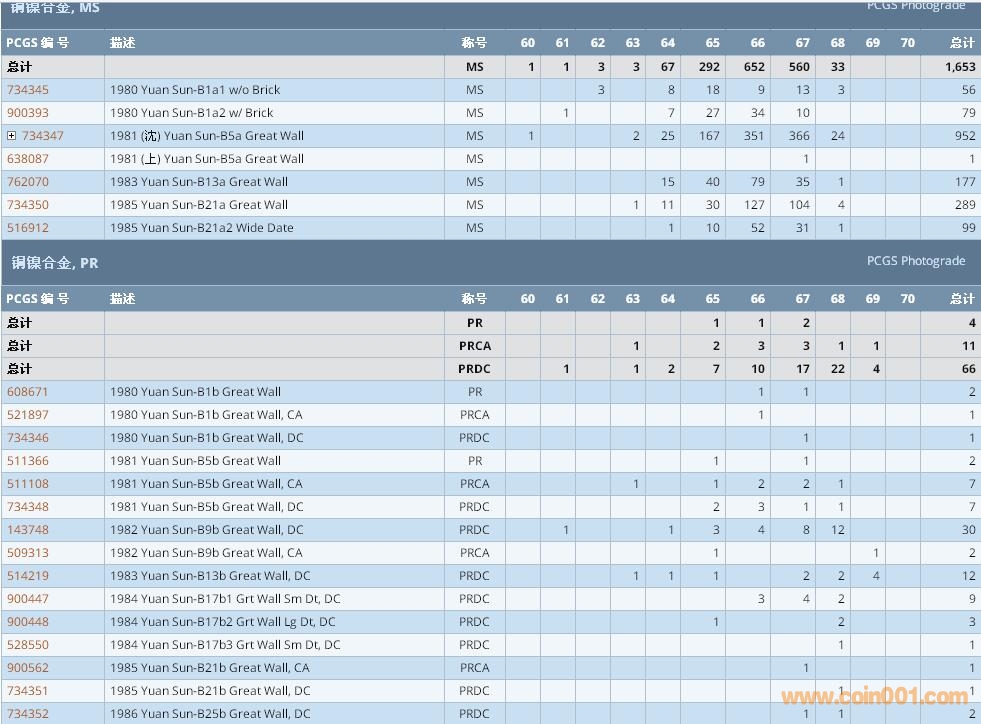 PCGS硬幣評級數(shù)量報告 ..