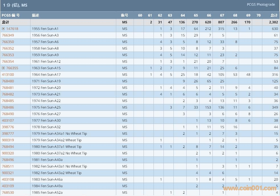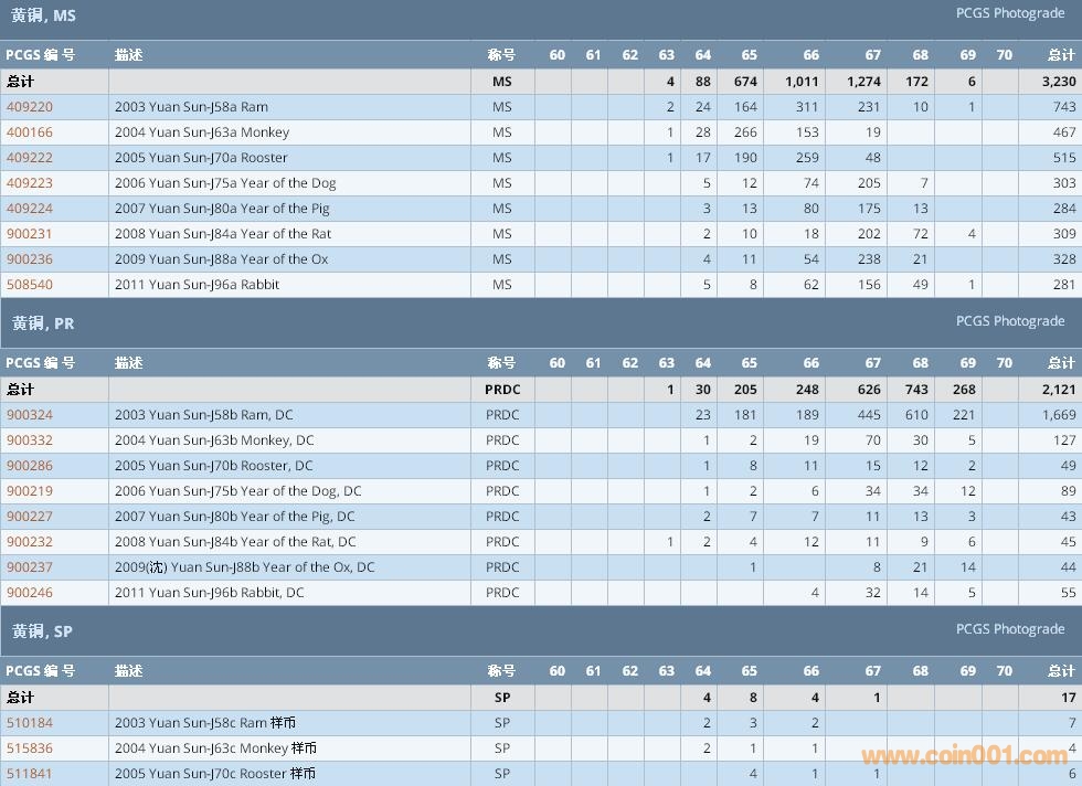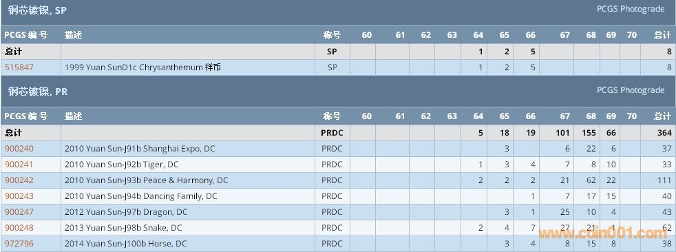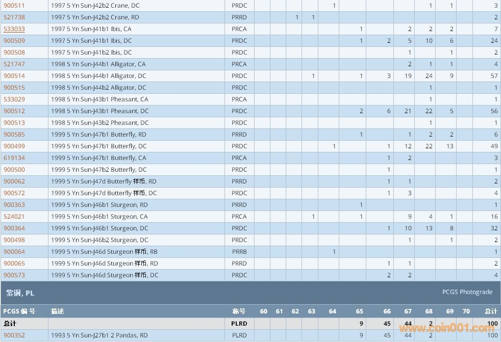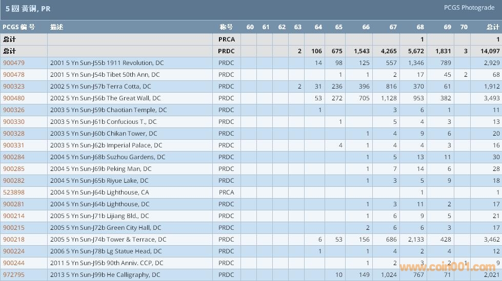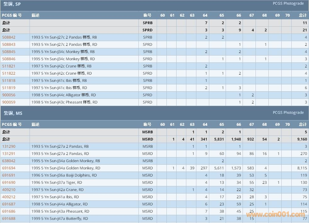 PCGS硬幣評級數(shù)量報告 ..