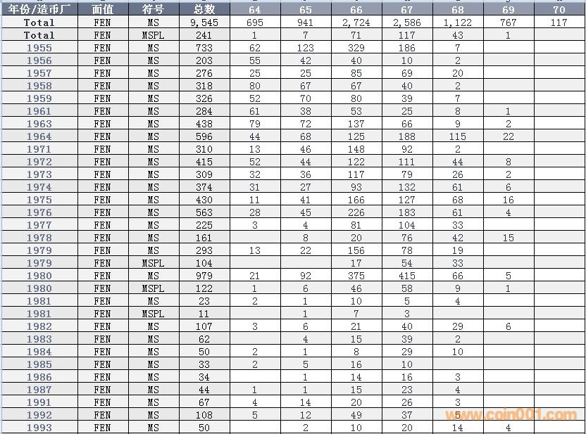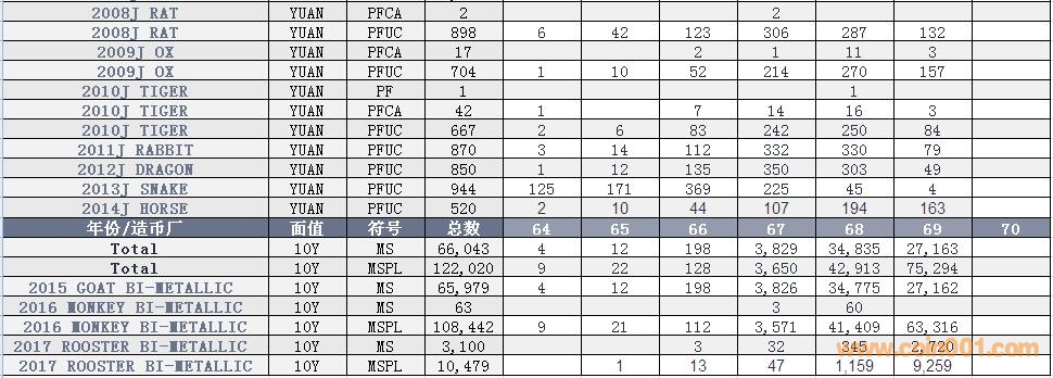 NGC硬幣評級數量報告 ..