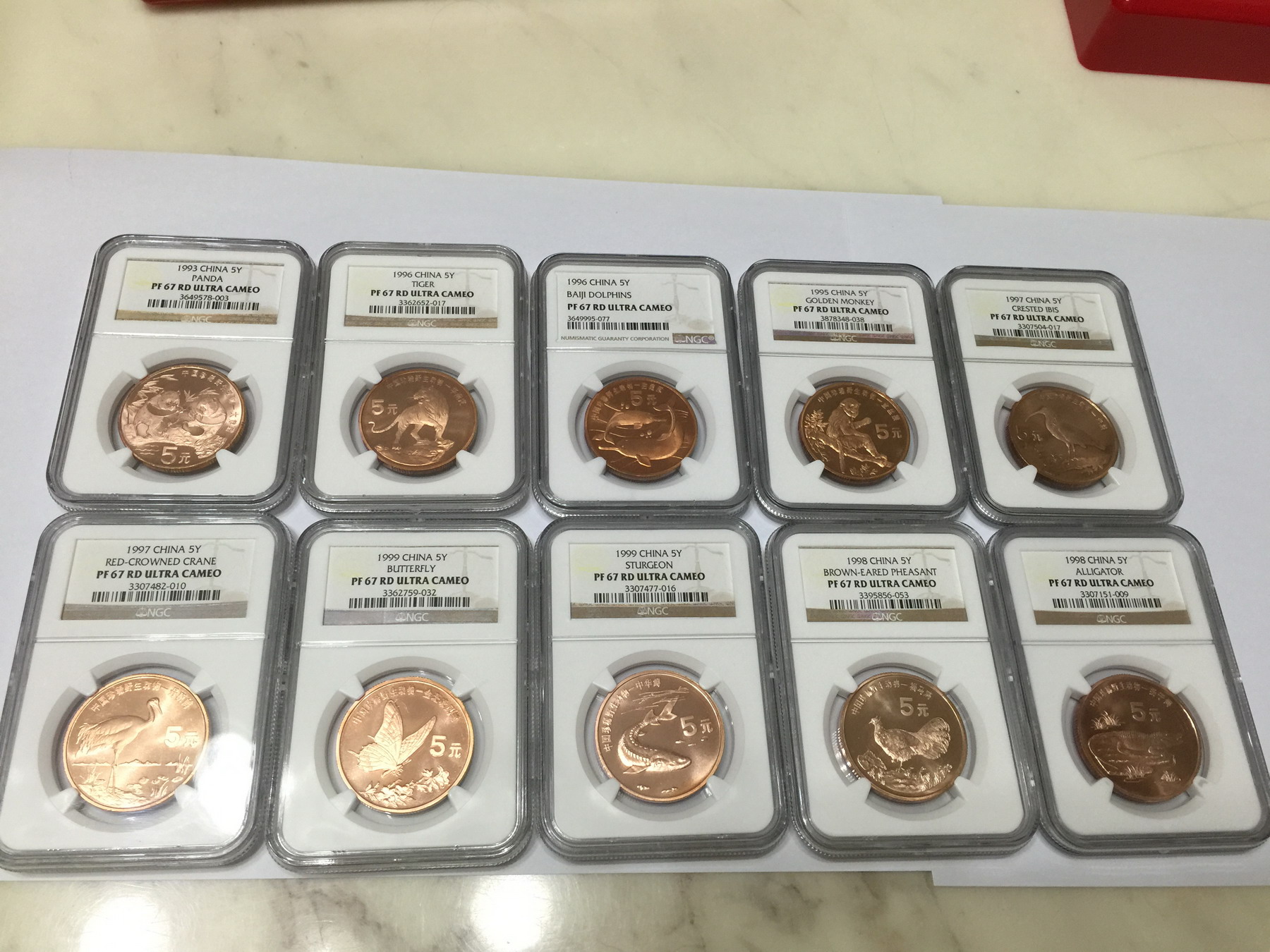 67rduc 動物全套一套(豚是新標,其它為老標),目前只能湊齊17套67UC,實際數量應該只有10套左右,虎豚UC極度稀少,眾所周知,現在精致動物評級為UC標簽難度極大。。。。。。價格33333,順豐包郵,品相如圖,卡冊全,包盒子完好,評級幣以分數為準,不因幣品相問題退換貨。。。。不常在線,手機號就是微信號,確認后麻煩電話通知一下,謝謝(68RDuc的成交價是15萬。。。。)