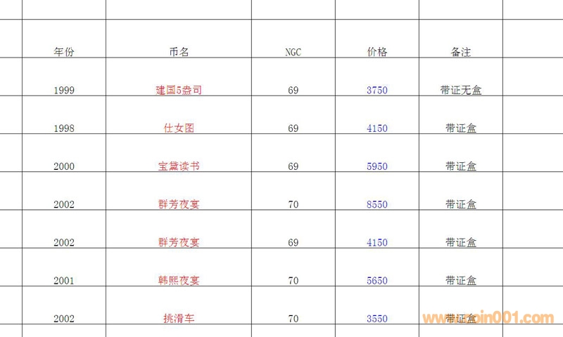 評級普通(精制)紀(jì)念幣交易
