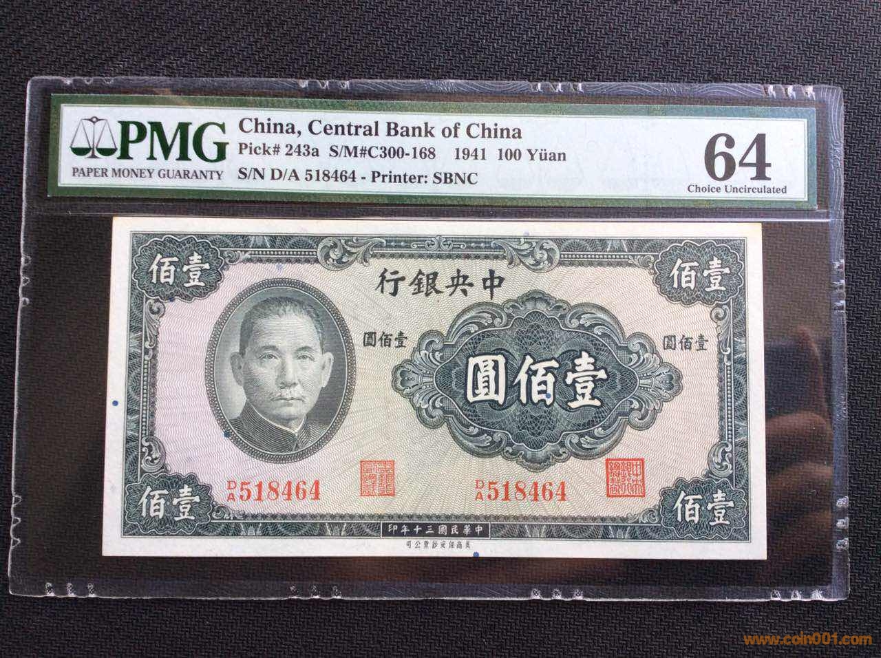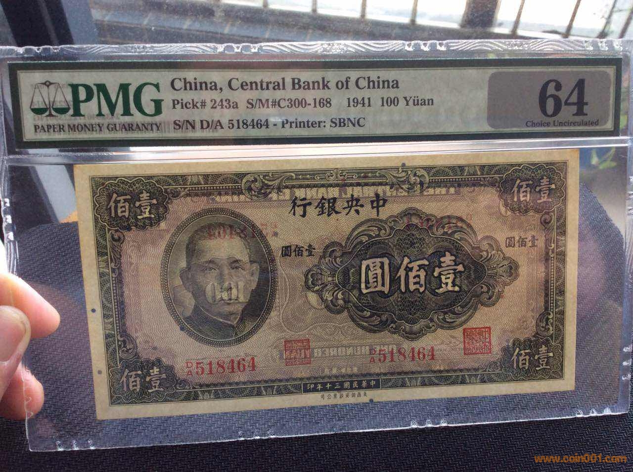 1941年中央銀行100元, 美商凹版技術(shù)印刷,采用彩色斑點(diǎn)鈔紙。全新原票未流通無(wú)任何處理,沒(méi)E主因上方兩個(gè)角有微黃(見(jiàn)圖3)介意勿確認(rèn)!