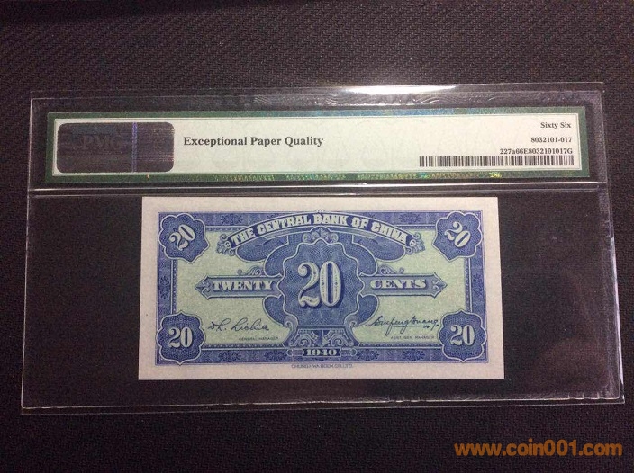 5、中央銀行2角(1940年) PMG66E 568516# ¥290
