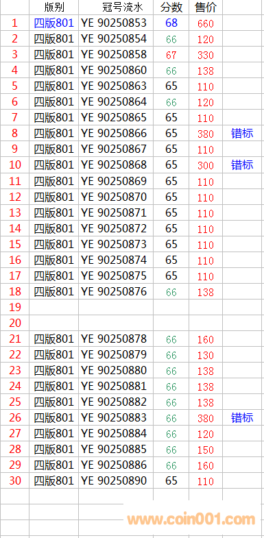 11月20日出售PMG66至68-- ..